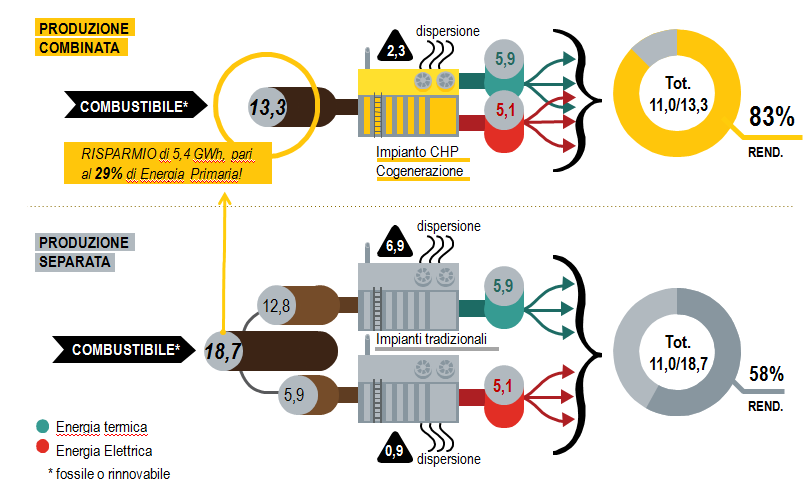 Article 2, paragraph 8, of Legislative Decree No. 79 of 16 March 1999 defines COGENERATION as “the combined production of electricity and heat under the conditions defined by the Electricity and Gas Authority, which guarantee significant energy savings compared to separate production”.
