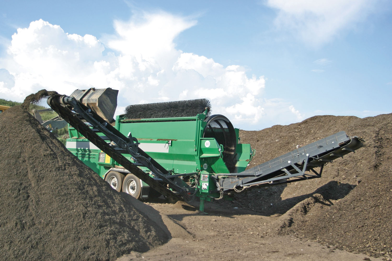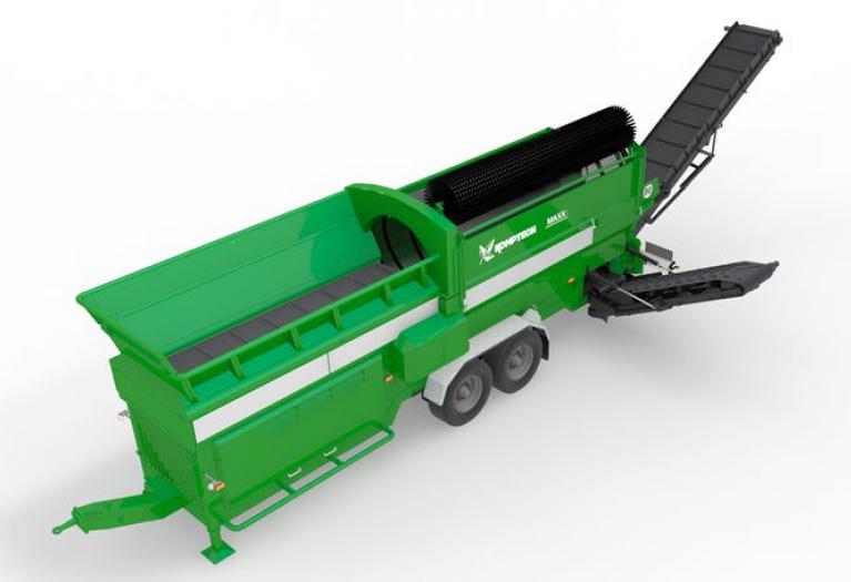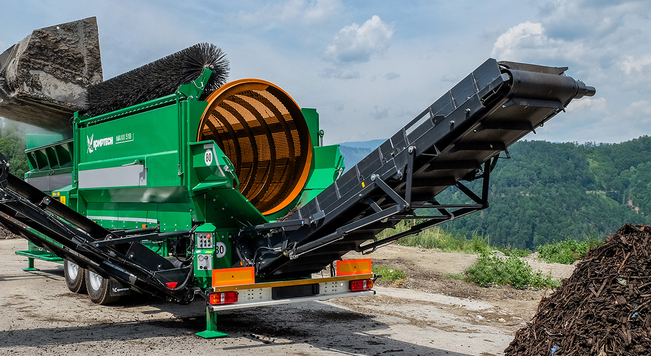 La tecnologia e l’efficienza del vaglio a tamburo Komptech MAXX, continuando a utilizzare il tuo vecchio tamburo NON Komptech. L'allestimento del MAXX 518 è: Motore Perkins da 55 kW Stage V/T4f Ventola reversibile Cleanfix Nastro laterale con altezza di scarico fino a 3,2 m Nastro posteriore con altezza di scarico fino a 4 m Velocità regolabile dei nastri di scarico Raschiatore spazzola rotante Doppia ruota di supporto al tandem Campana per spostamento Stacca batterie Dispositivo Connect per Industria 4.0
