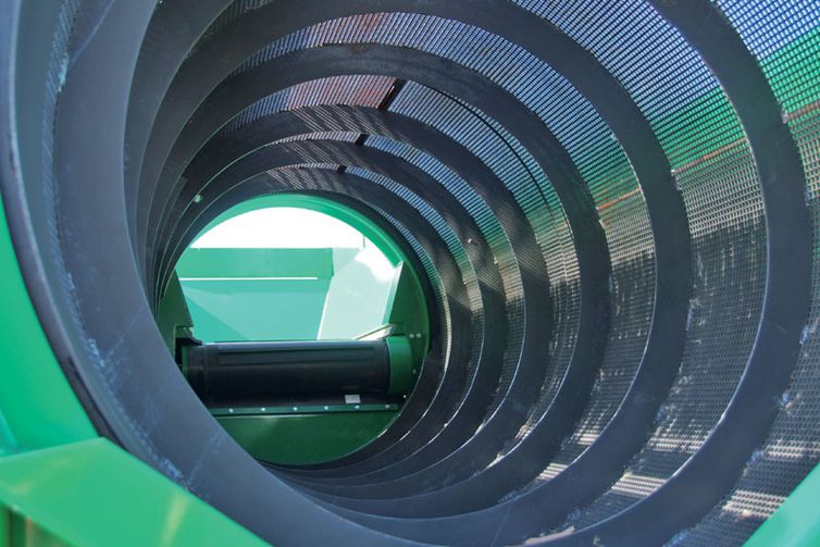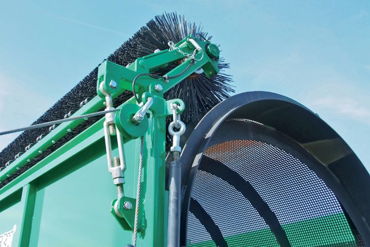 Una spazzola circolare rotante, regolabile dalla parte inferiore, mantiene pulito il tamburo; la sua posizione, opposta al lato del vaglio, non presenta rischi di contaminazione da parte del materiale vagliato. A richiesta, raschiatori a molla in acciaio mantengono pulite le spazzole.