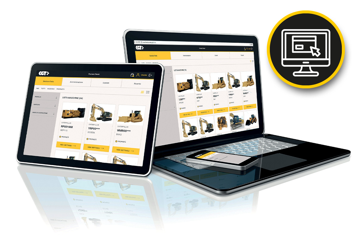 Il nuovo Portale Clienti, areaclienti.cgt.it, raccoglie in un unico contenitore digitale numerose informazioni pratiche per rendere più semplici, veloci e vantaggiose tante attività che richiedono ai Clienti tempo prezioso. Fatture, contratti di noleggio e di manutenzione, documenti utili e acquisto ricambi sono a portata di clic, così come alcuni dati basilari delle macchine: posizione, consumo e ore di lavoro.